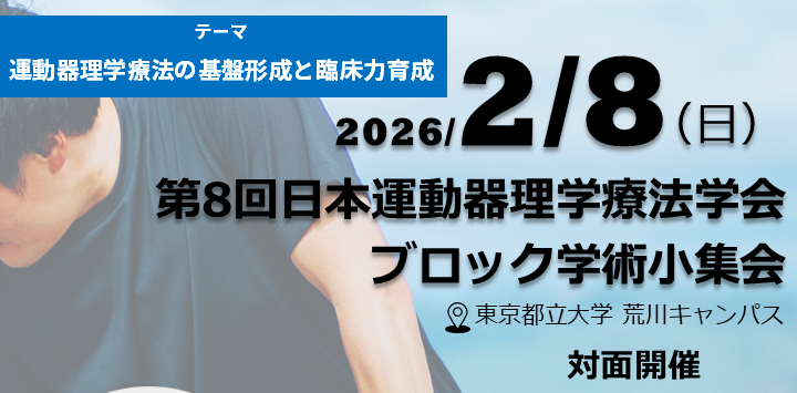 | 2025.11.05 | 第8回日本運動器理学療法学会 ブロック学術小集会 開催のお知らせ |