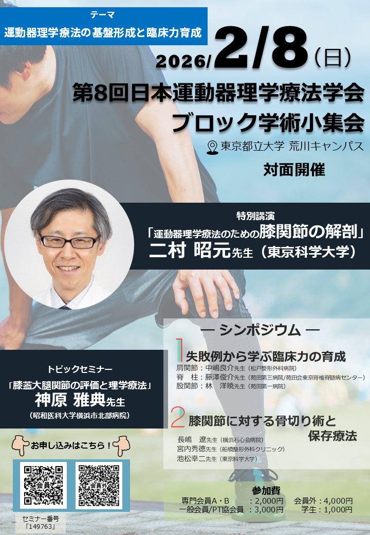 第8回日本運動器理学療法学会 ブロック学術小集会 開催のお知らせ