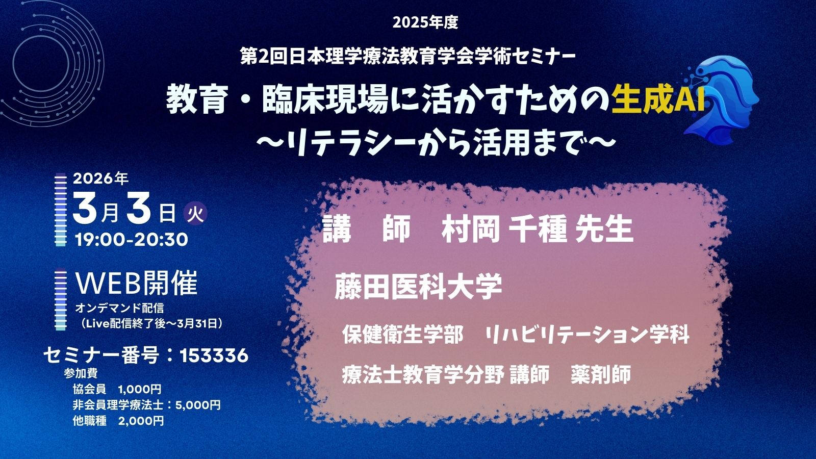 | 2026.01.12 | 第14回日本理学療法教育学会学術大会終了しました。 |