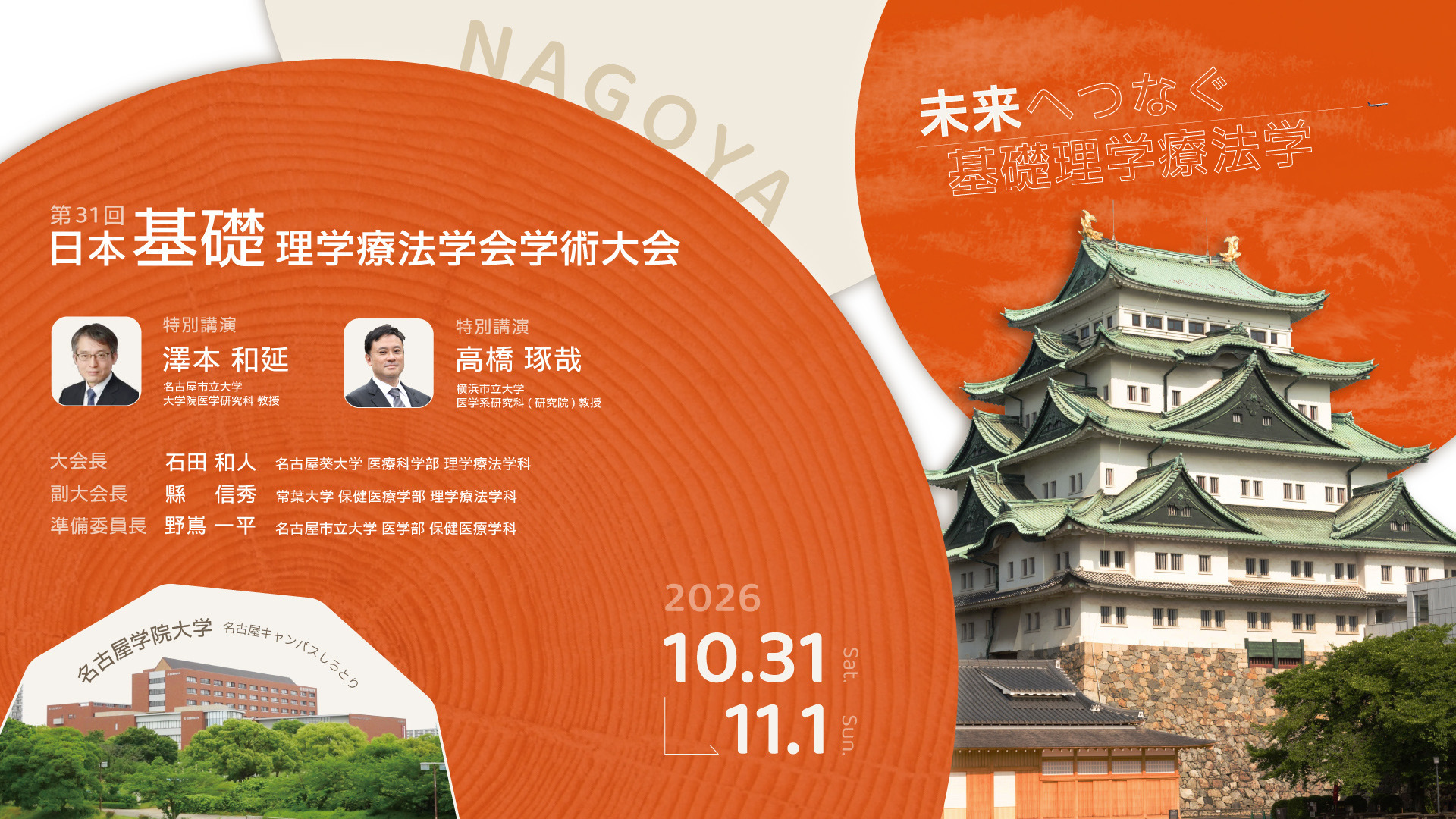 | 2026.01.08 | 「学術大会」ページにて第31回日本基礎理学療法学会学術大会の情報を更新しました. |