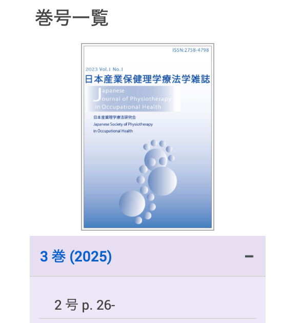 当研究会機関誌「日本産業保健理学療法学雑誌」の第3巻2号が刊行されました。
