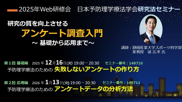 | 2025.11.20 | 2025年度 日本予防理学療法学会ワークショップ研究法(研究法セミナー)開催のご案内 |